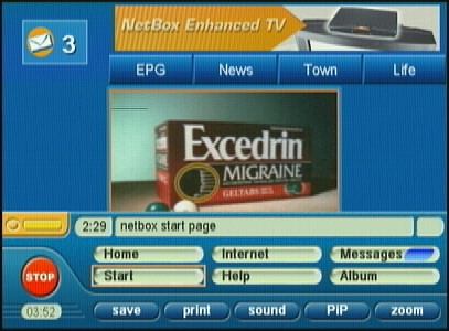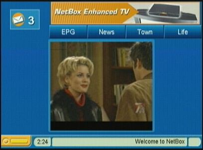 Netgem screen with the TV video when you first turn on the box. Internet